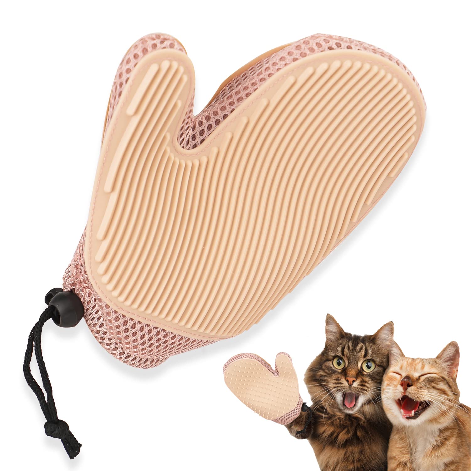 Higher and Soft Silicone TipsThe conical shape tips, durable silicone material, longer bristles, helping you effectively to deshed hair deeply, catching more hair at one-time. | One SIze Fit AllThe adjustable wrist Nylon stripe allows all hands size can wear it easily. No stuff feeling when wearing, as the breathable mesh fabric allows the air can come in and out freely. | Three Colors Available1. Buy one glove, get two functions, avoiding repeating purchasing. 2. Three colors available for your choice. Each color is adorable for both pets and pet parents. |
